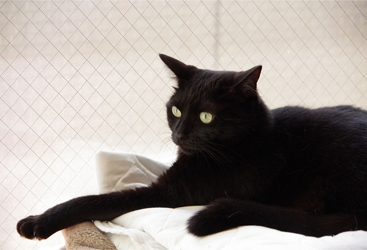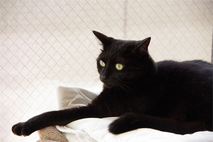 幼少時、正月早々クルマにはねられた不運な野良猫。保護されるも片脚を無くすこととなったが、その後は24時間365日エアコンの効いた室内で過ごしゴハンの心配もない環境で過ごせる彼女は、もしかしたら幸運なのかもしれない。片脚がない分、基礎消費カロリーが少ないのか最近はどんどんと丸くなっています。